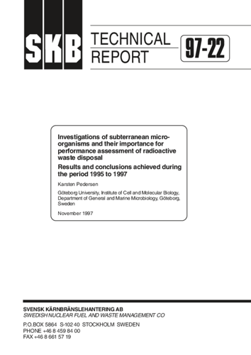 Investigations of subterranean microorganisms and their importance for performance assessment of radioactive waste disposal. Results and conclusions achieved during the period 1995 to 1997