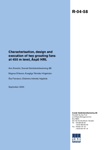 Characterisation, design and execution of two grouting fans at 450 m level, Äspö HRL