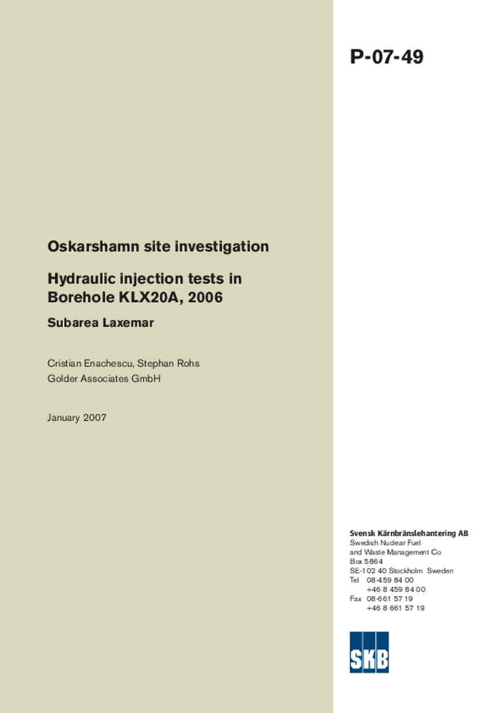 Oskarshamn site investigation. Hydraulic injection tests in borehole KLX20A, 2006 Subarea Laxemar