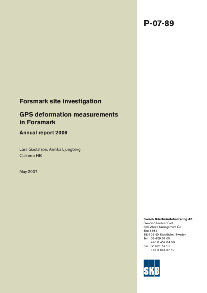 Forsmark site investigation. GPS deformation measurements in Forsmark. Annual report 2006