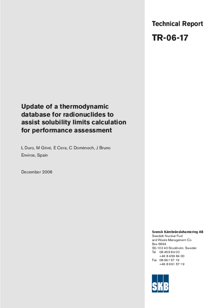 Update of a thermodynamic database for radionuclides to assist solubility limits calculation for performance assessment