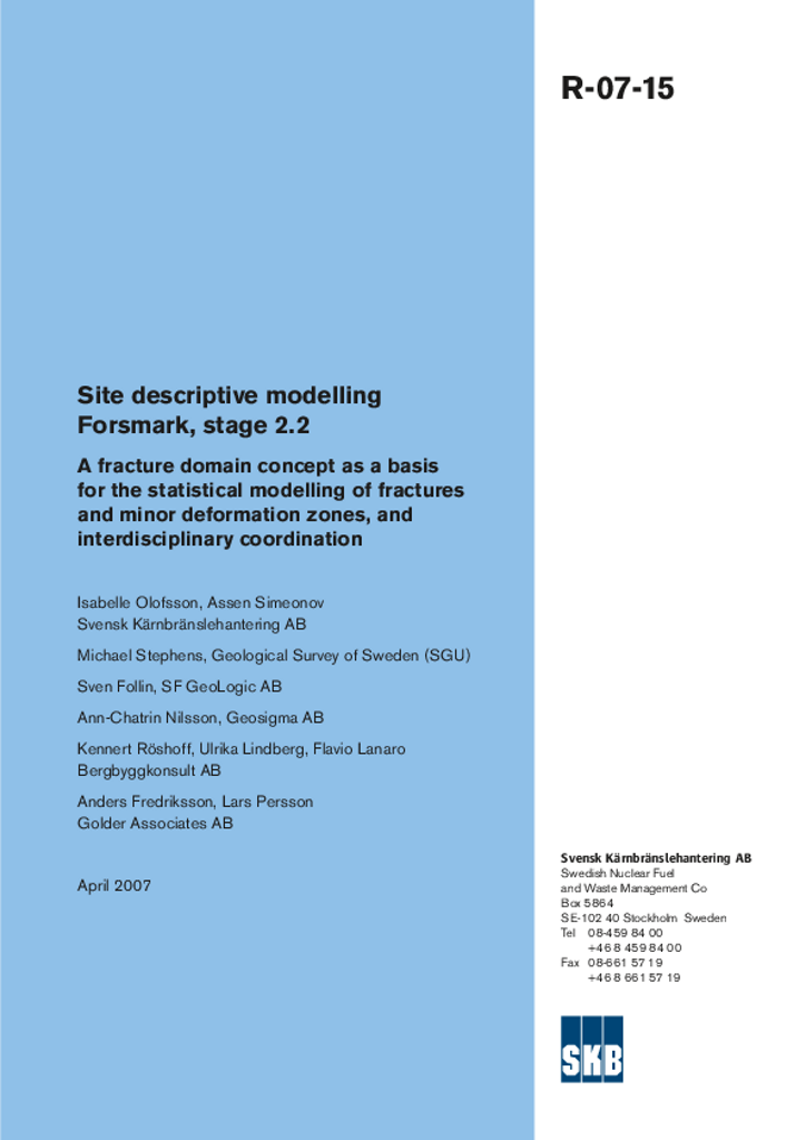 Site descriptive modelling Forsmark, stage 2.2. A fracture domain concept as a basis for the statistical modelling of fractures and minor deformation zones, and interdisciplinary coordination