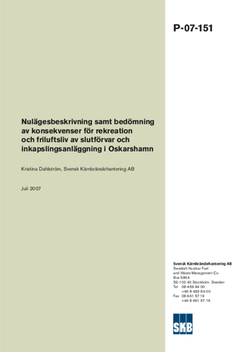Nulägesbeskrivning samt bedömning av konsekvenser för rekreation och friluftsliv av slutförvar och inkapslingsanläggning i Oskarshamn