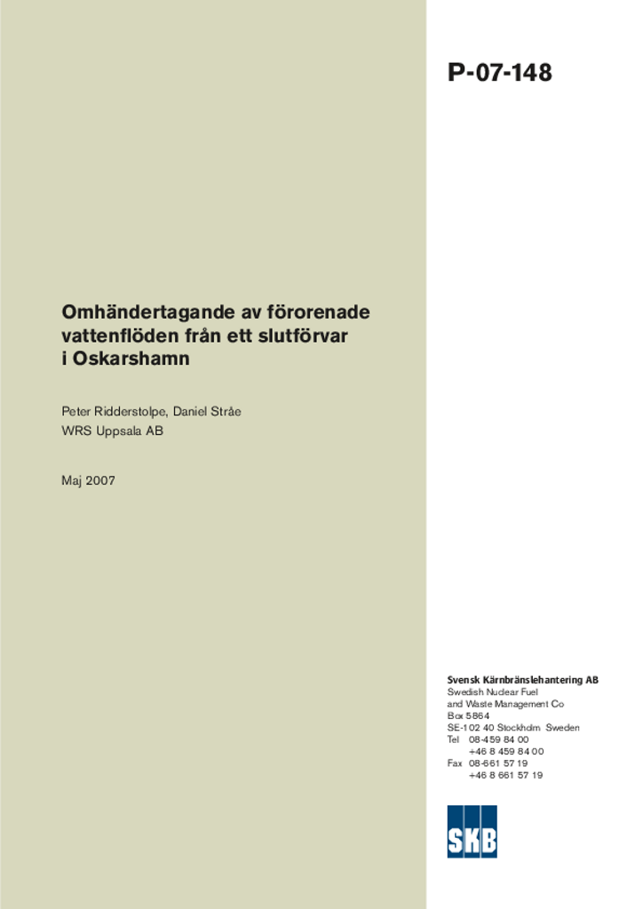 Omhändertagande av förorenade vattenflöden från ett slutförvar i Oskarshamn
