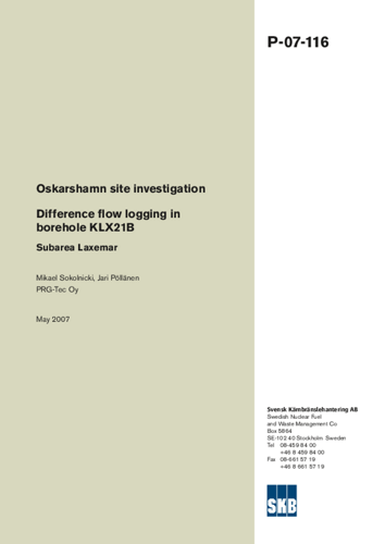 Oskarshamn site investigation. Difference flow logging in borehole KLX21B Subarea Laxemar