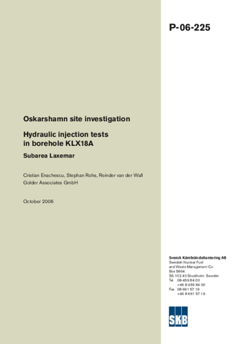 Oskarshamn site investigation. Hydraulic injection tests in borehole KLX18A Subarea Laxemar