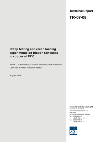 Creep testing and creep loading experiments on friction stir welds in copper at 75ºC