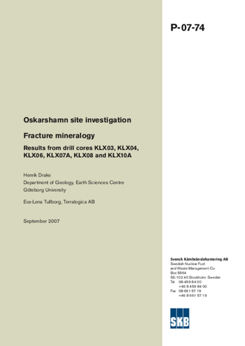 Oskarshamn site investigation. Fracture mineralogy. Results from drill cores KLX03, KLX04, KLX06, KLX07A, KLX08 and KLX10A
