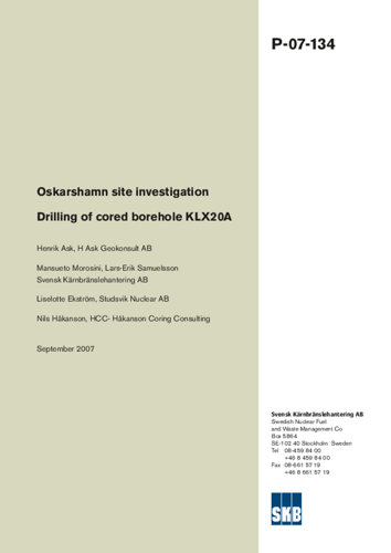 Oskarshamn site investigation. Drilling of cored borehole KLX20A