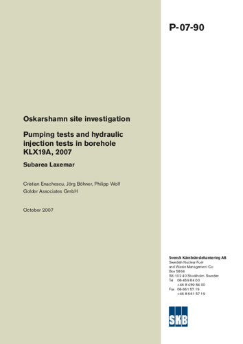Oskarshamn site investigation. Pumping tests and hydraulic injection tests in borehole KLX19A, 2007 Subarea Laxemar