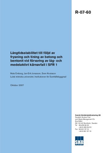 Långtidsstabilitet till följd av frysning och tining av betong och bentonit vid förvaring av låg- och medelaktivt kärnavfall i SFR 1