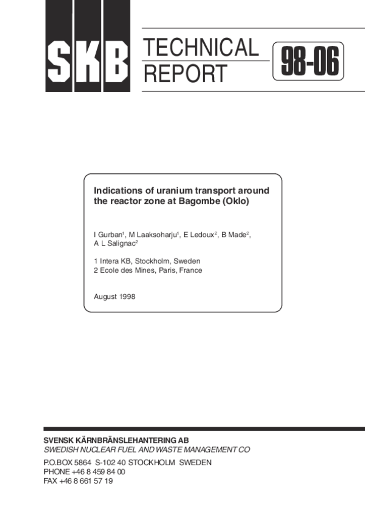 Indications of uranium transport around the reactor zone at Bagombe (Oklo)