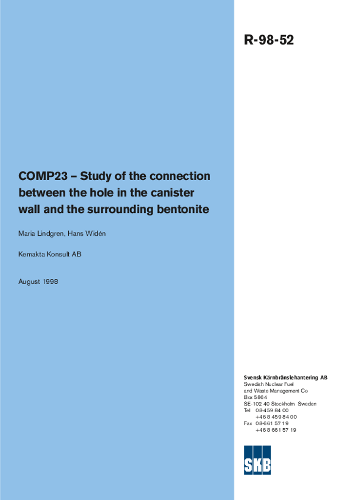 COMP 23 Study of the connection between the hole in the canister wall and the surrounding bentonite