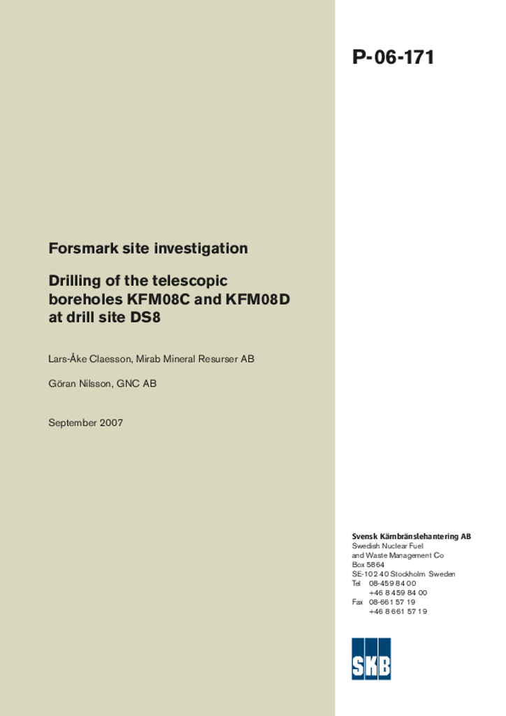 Forsmark site investigation. Drilling of the telescopic boreholes KFM08C and KFM08D at drill site DS8