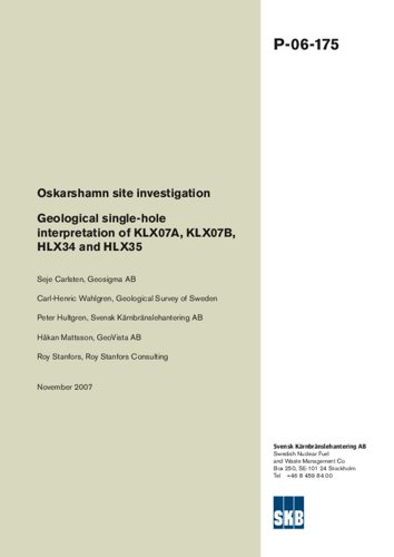 Oskarshamn site investigation. Geological single-hole interpretation of KLX07A, KLX07B, HLX34 and HLX35