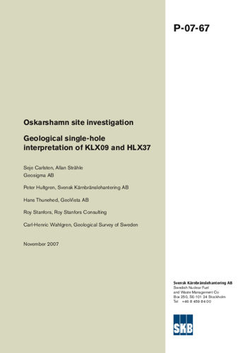 Oskarshamn site investigation. Geological single-hole interpretation of KLX09 and HLX37