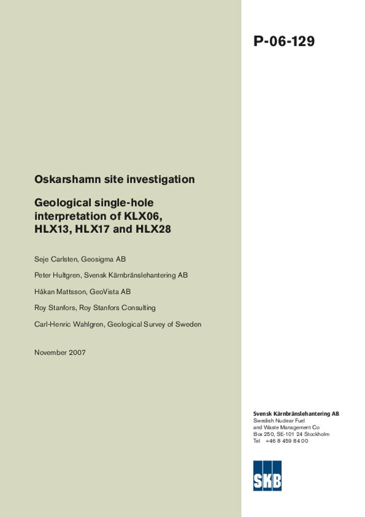 Oskarshamn site investigation. Geological single-hole interpretation of KLX06, HLX13, HLX17 and HLX28