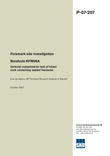 Forsmark site investigation. Borehole KFM06A. Uniaxial compression test of intact rock containing sealed fractures