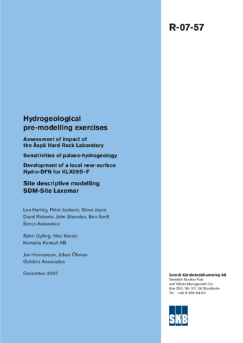 Hydrogeological pre-modelling exercises. Assessment of impact of the Äspö Hard Rock Laboratory. Sensitivities of palaeo-hydrogeology. Development of a local near-surface Hydro-DFN for KLX09B-F. Site descriptive modelling SDM-Site Laxemar