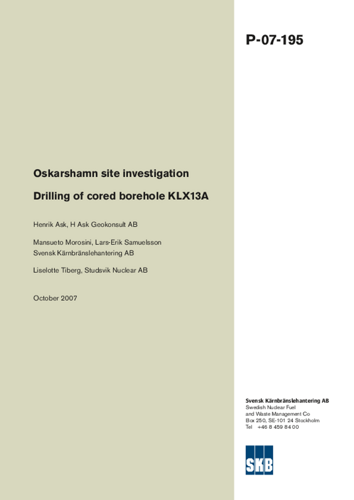 Oskarshamn site investigation. Drilling of cored borehole KLX13A
