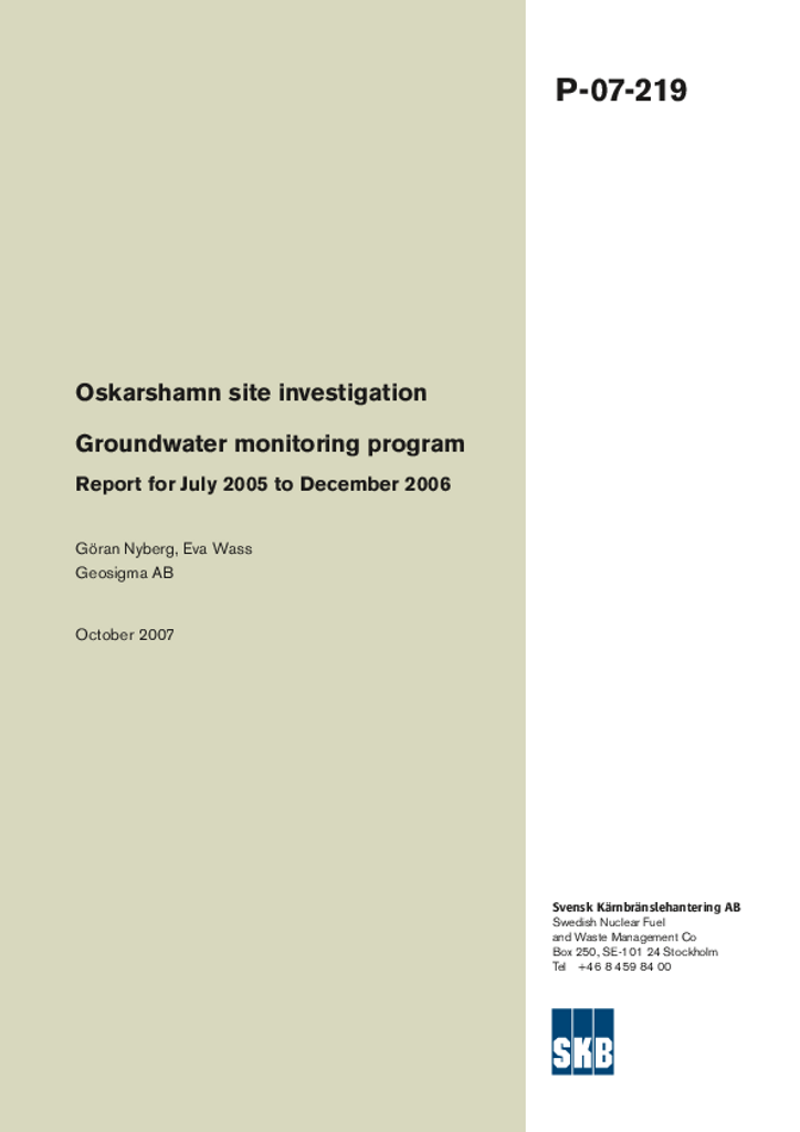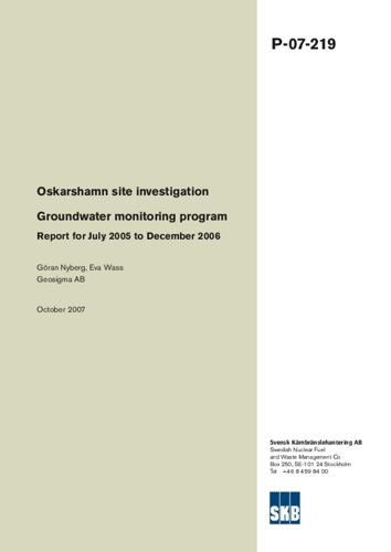 Oskarshamn site investigation. Groundwater monitoring program. Report for July 2005 to December 2006