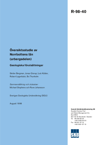 Översiktsstudie av Norrbottens län. Geologiska förutsättningar