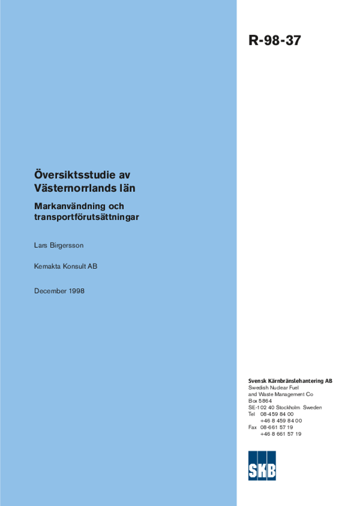 Översiktsstudie av Västernorrlands län. Markanvändning och transportförutsättningar