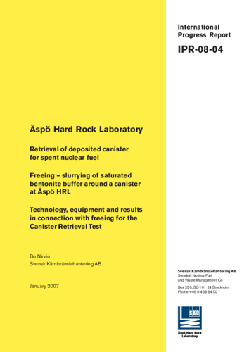 Retrieval of deposited canister for spent nuclear fuel. Freeing - slurrying of saturated bentonite buffer around a canister at Äspö HRL. Technology. equipment and results in connection with freeing for the Canister Retrieval Test