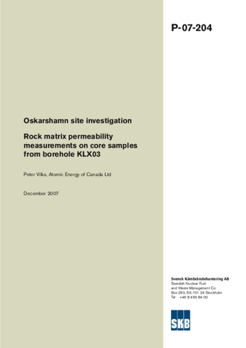 Oskarshamn site investigation. Rock matrix permeability measurements on core samples from borehole KLX03