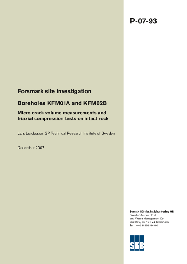 Forsmark site investigation. Boreholes KFM01A and KFM02B. Micro crack volume measurements and triaxial compression tests on intact rock