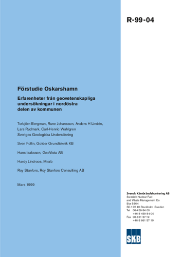 Förstudie Oskarshamn. Erfarenheter från geovetenskapliga undersökningar i nordöstra delen av kommunen