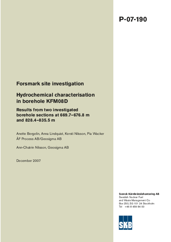Forsmark site investigation. Hydrochemical characterisation in borehole KFM08D. Results from two investigated borehole sections at 669.7-676.8 m and 828.4-835.5 m