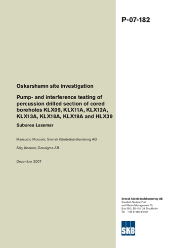 Oskarshamn site investigation. Pump- and interference testing of percussion drilled section of cored boreholes KLX09, KLX11A, KLX12A, KLX13A, KLX18A, KLX19A and KLX39 Subarea Laxemar