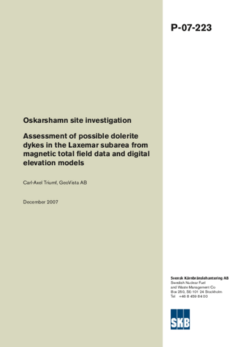 Oskarshamn site investigation. Assessment of possible dolerite dykes in the Laxemar subarea from magnetic total field data and digital elevation models