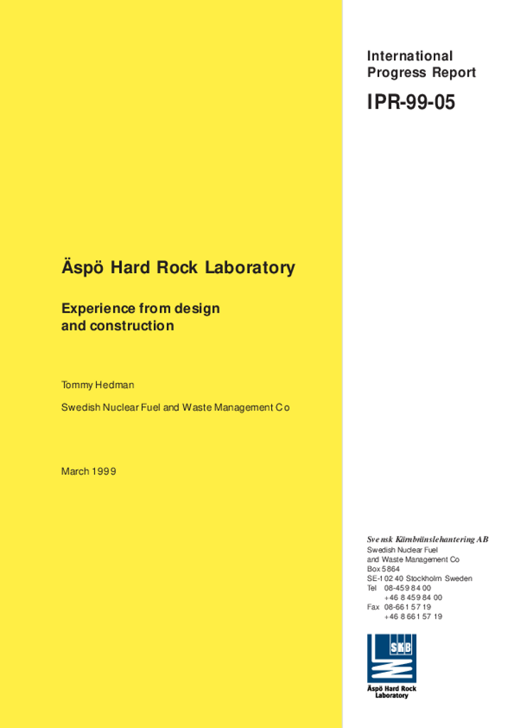 Äspö Hard Rock Laboratory. Experience from design and construction
