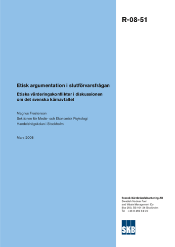 Etisk argumentation i slutförvarsfrågan. Etiska värderingskonflikter i diskussionen om det svenska kärnavfallet