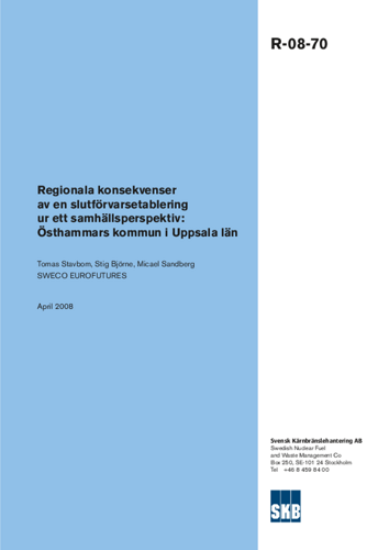 Regionala konsekvenser av en slutförvarsetablering ur ett samhällsperspektiv: Östhammars kommun/Uppsala län Regionala konsekvenser av en slutförvarsetablering ur ett samhällsperspektiv: Östhammars kommun/Uppsala län