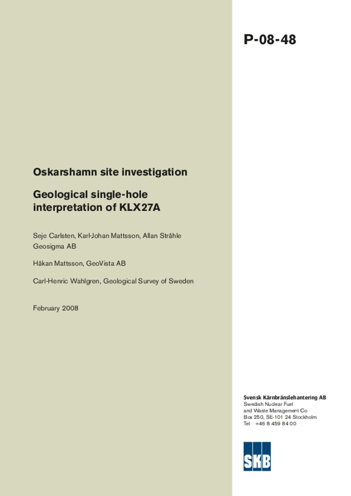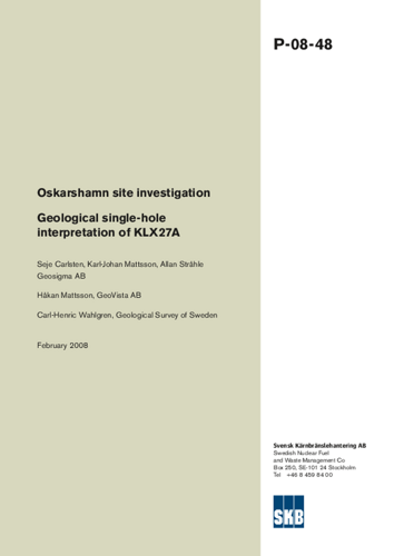 Oskarshamn site investigation. Geological single-hole interpretation of KLX27A