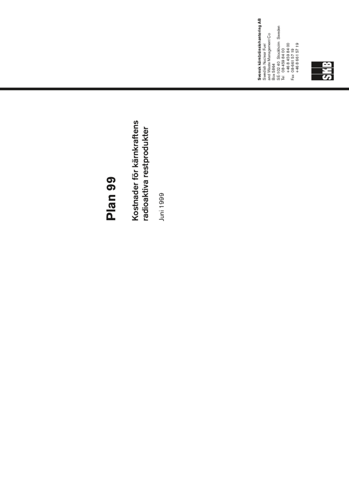 PLAN 99. Kostnader för kärnkraftens radioaktiva restprodukter