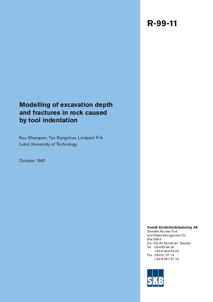 Modelling of excavation depth and fractures in rock caused by tool indentation