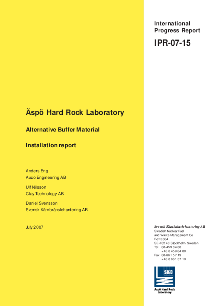 Äspö Hard Rock Laboratory. Alternative Buffer Material. Installation report