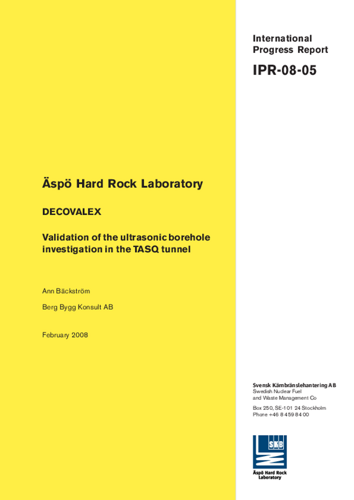 Äspö Hard Rock Laboratory. DECOVALEX. Validation of the ultrasonic borehole investigation in the TASQ tunnel