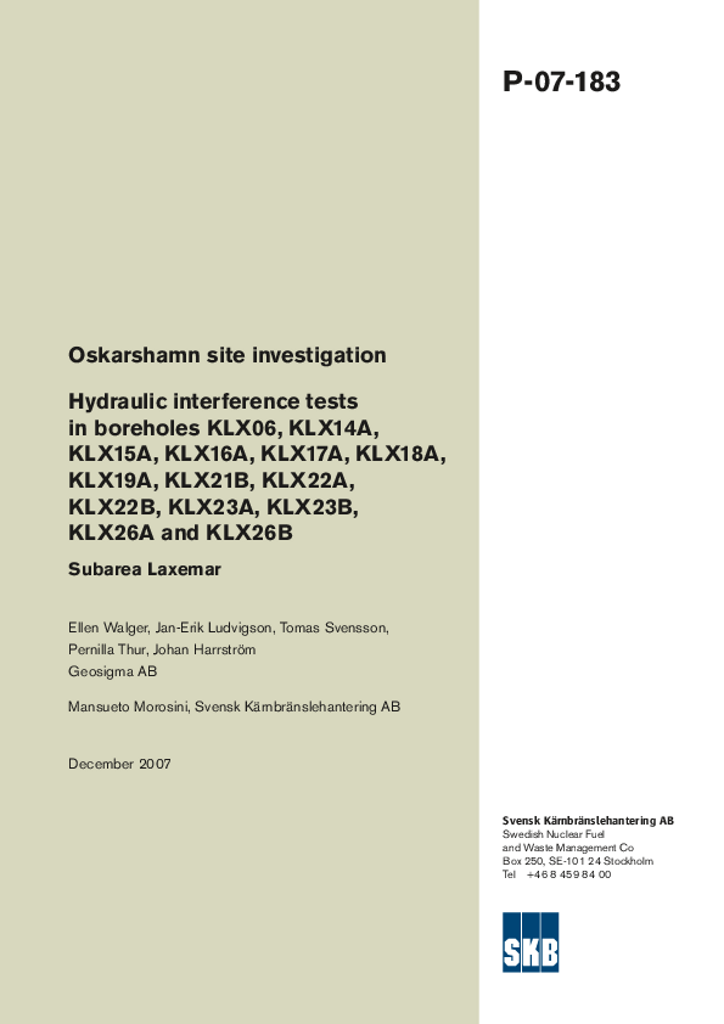 Oskarshamn site investigation. Hydraulic interference tests in boreholes KLX06, KLX14A, KLX15A, KLX16A, KLX17A, KLX18A, KLX19A, KLX21A, KLX22A, KLX22B, KLX23A, KLX23B, KLX26A and KLX26B. Subarea Laxemar