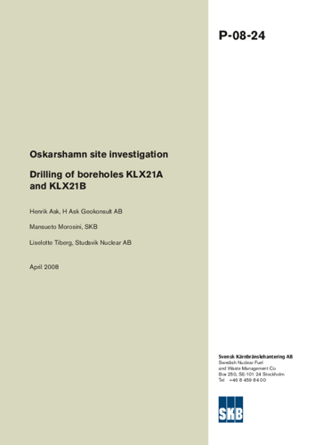 Oskarshamn site investigation. Drilling of boreholes KLX21A and KLX21B