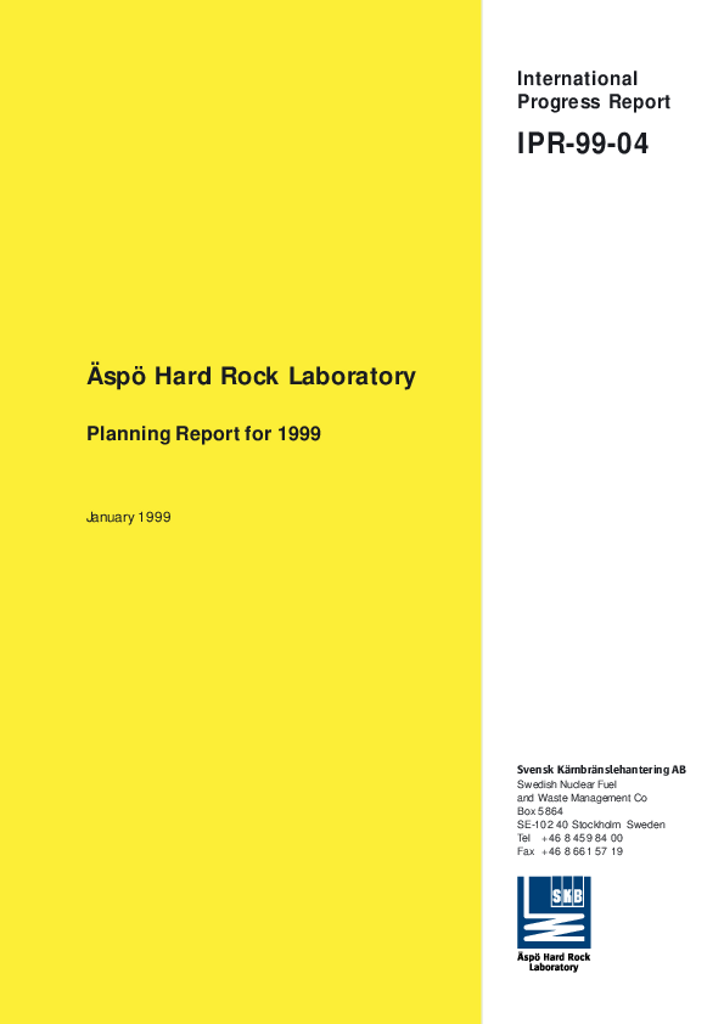 Äspö Hard Rock Laboratory. Planning report for 1999