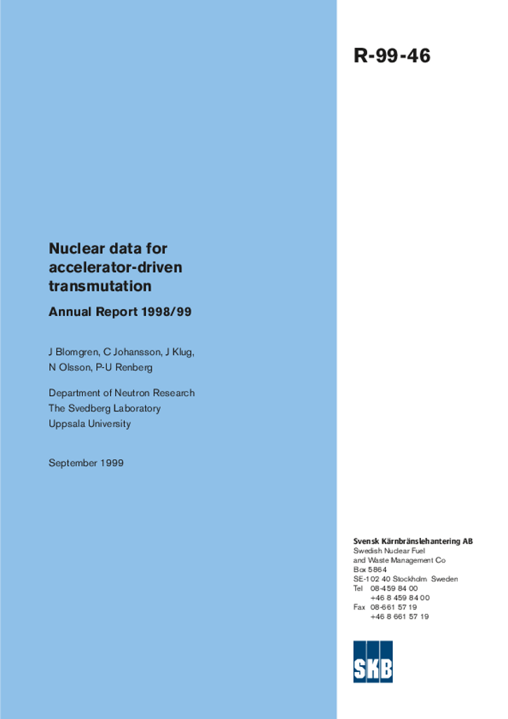 Nuclear data for accelerator-driven transmutation. Annual report 1998/99