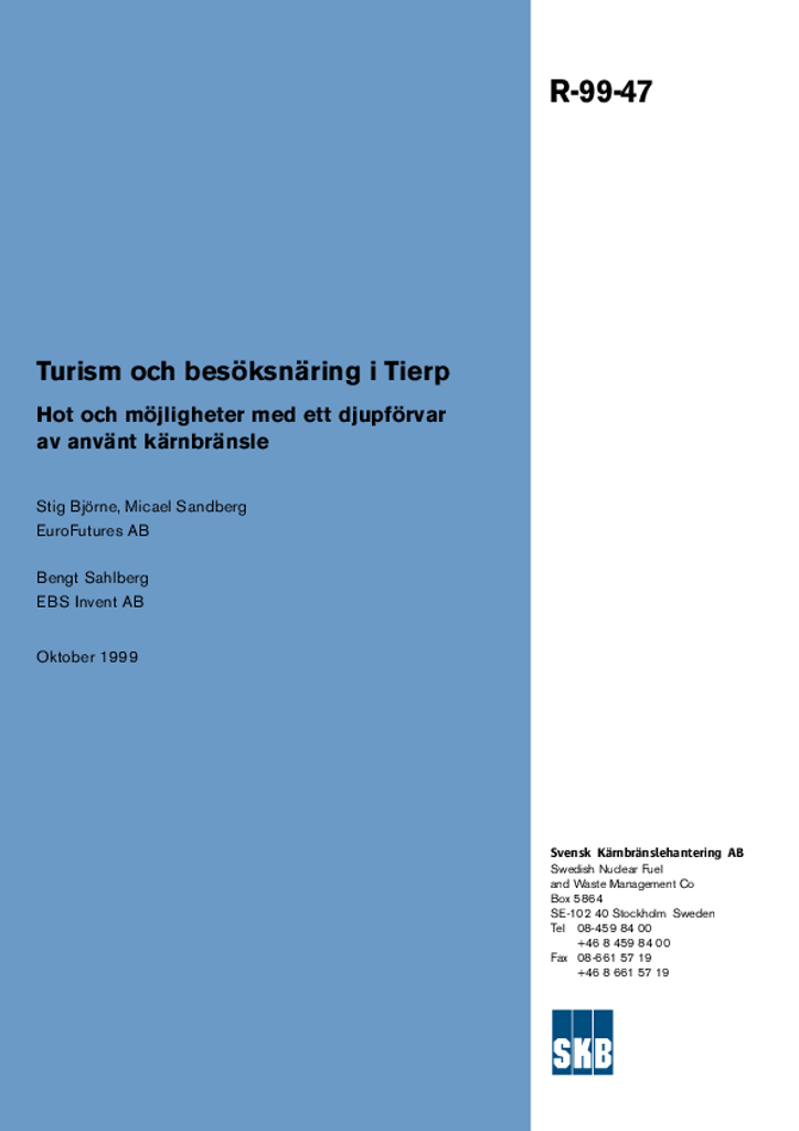 Turism och besöksnäring i Tierp. Hot och möjligheter med ett djupförvar av använt kärnbränsle