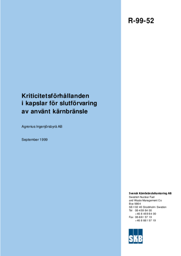 Kriticitetsförhållanden i kapslar för slutförvaring av använt kärnbränsle