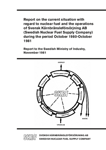 Report to the Swedish Ministry of Industry, November 1981. Report on the current situation with regard to nuclear fuel and the operations of Svensk Kärnbränsleförsörjning AB (Swedish Nuclear Fuel Supply Company) during the period October 1980 - October 1981