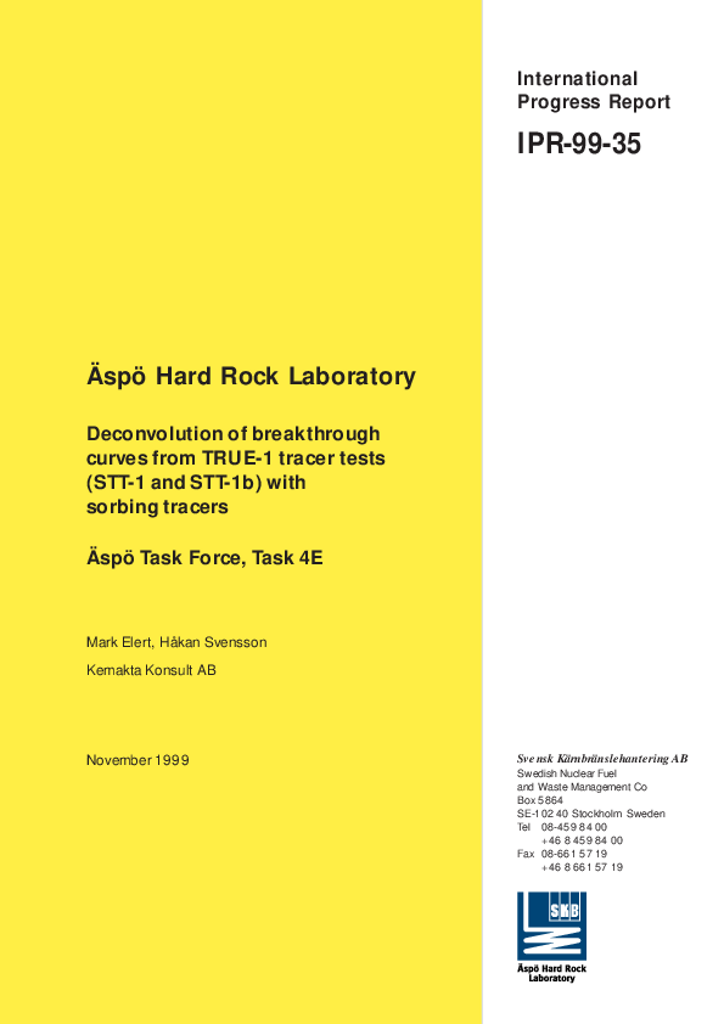 Äspö Hard Rock Laboratory. Deconvolution of breakthrough curves from TRUE-1 tracer tests (STT-1 and STT-1b) with sorbing tracers. Äspö Task Force, Task 4E